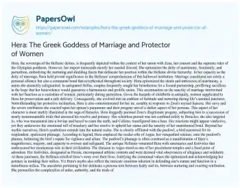 Hera: The Greek Goddess of Marriage and Protector of Women. (2024, May 12). Retrieved from https://hub.papersowl.com/examples/hera-the-greek-goddess-of-marriage-and-protector-of-women/