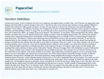 This essay will examine the concept of heroism, discussing its various interpretations and manifestations. It will explore traditional and modern perceptions of heroism, considering factors such as bravery, self-sacrifice, and moral integrity. The piece will discuss how the definition of heroism evolves in different cultural and historical contexts. At PapersOwl too, you can discover numerous free essay illustrations related to Courage.