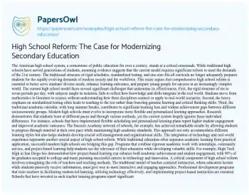 High School Reform: The Case for Modernizing Secondary Education. (2024, Dec 27). Retrieved from https://hub.papersowl.com/examples/high-school-reform-the-case-for-modernizing-secondary-education/