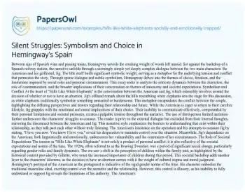 Silent Struggles: Symbolism and Choice in Hemingway's Spain. (2021, Jul 10). Retrieved from https://hub.papersowl.com/examples/hills-like-white-elephants-socially-and-emotionally-trapped/
