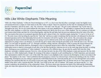 This essay will analyze the title of Hemingway’s “Hills Like White Elephants,” exploring its metaphorical significance to the story’s theme of communication breakdown and the complexities of human relationships. At PapersOwl, you’ll also come across free essay samples that pertain to Hills Like White Elephants.