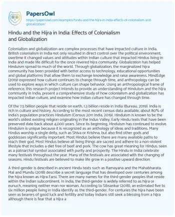 Hindu and the Hijra in India: Effects of Colonialism and Globalization. (2021, Mar 25). Retrieved from https://hub.papersowl.com/examples/hindu-and-the-hijra-in-india-effects-of-colonialism-and-globalization/