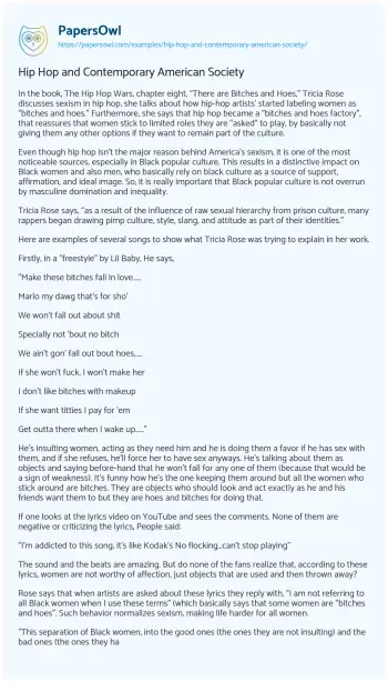 Hip Hop and Contemporary American Society. (2021, Jul 10). Retrieved from https://hub.papersowl.com/examples/hip-hop-and-contemporary-american-society/