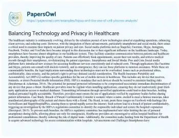 Balancing Technology and Privacy in Healthcare. (2020, May 13). Retrieved from https://hub.papersowl.com/examples/hipaa-and-the-use-of-cell-phones-analysis/