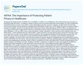 HIPAA: The Importance of Protecting Patient Privacy in Healthcare. (2025, Jul 04). Retrieved from https://hub.papersowl.com/examples/hipaa-the-importance-of-protecting-patient-privacy-in-healthcare/
