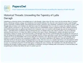 Historical Threads: Unraveling the Tapestry of Lydia Darragh. (2024, Mar 01). Retrieved from https://hub.papersowl.com/examples/historical-threads-unraveling-the-tapestry-of-lydia-darragh/