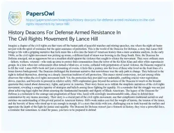 History Deacons For Defense Armed Resistance In The Civil Rights Movement By Lance Hill. (2024, Apr 14). Retrieved from https://hub.papersowl.com/examples/history-deacons-for-defense-armed-resistance-in-the-civil-rights-movement-by-lance-hill/