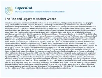 The Rise and Legacy of Ancient Greece. (2020, Jan 01). Retrieved from https://hub.papersowl.com/examples/history-of-ancient-greece/