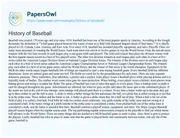 History of Baseball. (2019, May 29). Retrieved from https://hub.papersowl.com/examples/history-of-baseball/