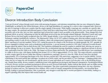 Divorce Introduction Body Conclusion. (2020, Apr 27). Retrieved from https://hub.papersowl.com/examples/history-of-divorce/