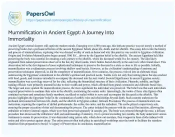 Mummification in Ancient Egypt: A Journey Into Immortality. (2019, Jul 12). Retrieved from https://hub.papersowl.com/examples/history-of-mummification/