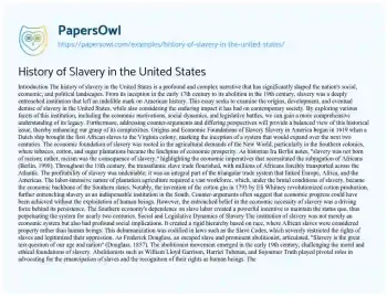 History of Slavery in the United States. (2024, Dec 27). Retrieved from https://hub.papersowl.com/examples/history-of-slavery-in-the-united-states/
