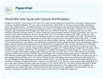 World War One Social and Cultural Ramifications. (2022, Apr 15). Retrieved from https://hub.papersowl.com/examples/history-of-the-world-war-1/
