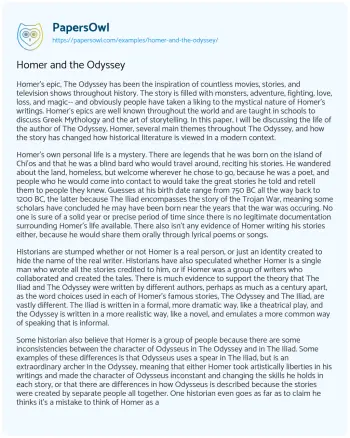 Homer and the Odyssey. (2020, Apr 28). Retrieved from https://hub.papersowl.com/examples/homer-and-the-odyssey/
