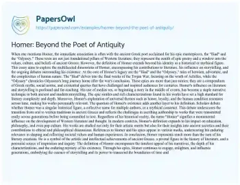 Homer: Beyond the Poet of Antiquity. (2024, Mar 25). Retrieved from https://hub.papersowl.com/examples/homer-beyond-the-poet-of-antiquity/