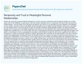 Reciprocity and Trust in Meaningful Personal Relationships. (2021, May 04). Retrieved from https://hub.papersowl.com/examples/honest-friend-building-trust-with-people-you-call-friends/