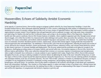 Hoovervilles: Echoes of Solidarity Amidst Economic Hardship. (2024, Jun 28). Retrieved from https://hub.papersowl.com/examples/hoovervilles-echoes-of-solidarity-amidst-economic-hardship/