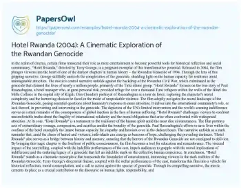 Hotel Rwanda (2004): A Cinematic Exploration of the Rwandan Genocide. (2023, Nov 24). Retrieved from https://hub.papersowl.com/examples/hotel-rwanda-2004-a-cinematic-exploration-of-the-rwandan-genocide/
