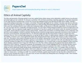 Ethics of Animal Captivity. (2019, Nov 21). Retrieved from https://hub.papersowl.com/examples/housing-animals-in-zoos-is-inhumane/