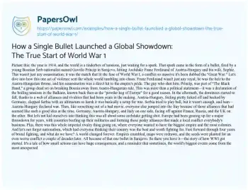 How a Single Bullet Launched a Global Showdown: The True Start of World War 1. (2024, Mar 01). Retrieved from https://hub.papersowl.com/examples/how-a-single-bullet-launched-a-global-showdown-the-true-start-of-world-war-1/