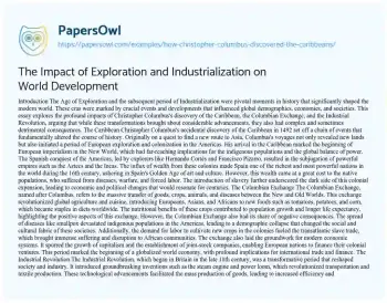 The Impact of Exploration and Industrialization on World Development. (2021, Apr 19). Retrieved from https://hub.papersowl.com/examples/how-christopher-columbus-discovered-the-caribbeans/