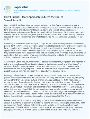 How Current Military Approach Reduces the Risk of Sexual Assault. (2019, Aug 11). Retrieved from https://hub.papersowl.com/examples/how-current-military-approach-reduces-the-risk-of-sexual-assault/