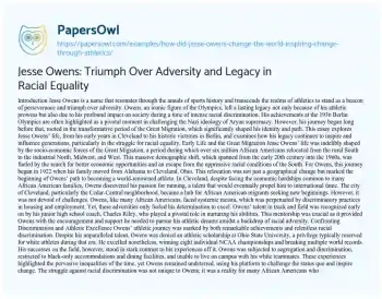 Jesse Owens: Triumph Over Adversity and Legacy in Racial Equality. (2023, Aug 18). Retrieved from https://hub.papersowl.com/examples/how-did-jesse-owens-change-the-world-inspiring-change-through-athletics/