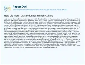 How Did Mardi Gras Influence French Culture. (2024, Apr 22). Retrieved from https://hub.papersowl.com/examples/how-did-mardi-gras-influence-french-culture/