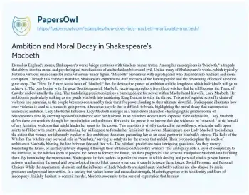 Ambition and Moral Decay in Shakespeare’s Macbeth. (2023, Aug 14). Retrieved from https://hub.papersowl.com/examples/how-does-lady-macbeth-manipulate-macbeth/