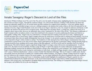 Innate Savagery: Roger's Descent in Lord of the Flies. (2020, Feb 11). Retrieved from https://hub.papersowl.com/examples/how-does-roger-change-in-lord-of-the-flies-by-william-golding/