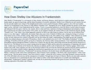How Does Shelley Use Allusions In Frankenstein