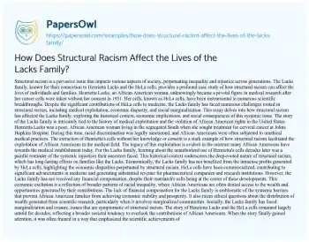 How Does Structural Racism Affect the Lives of the Lacks Family?