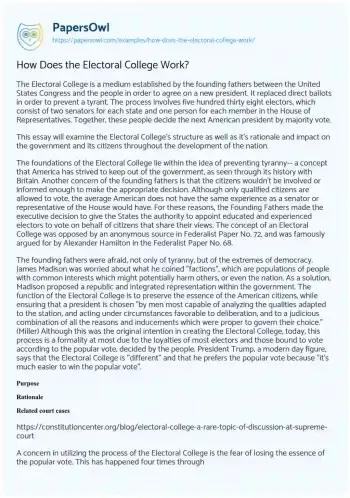 How Does the Electoral College Work?. (2019, Apr 19). Retrieved from https://hub.papersowl.com/examples/how-does-the-electoral-college-work/