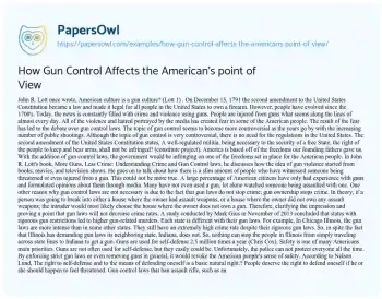 This piece looks at gun control from the perspective of the American populace. By weaving together public opinion polls, cultural attitudes, and historical events, it presents a multifaceted view on how gun control impacts the American psyche. PapersOwl offers a variety of free essay examples on the topic of Crime topic.