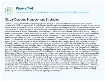 Global Diabetes Management Strategies. (2019, Feb 16). Retrieved from https://hub.papersowl.com/examples/how-is-low-carbohydrate-diet-beneficial-to-diabetes/