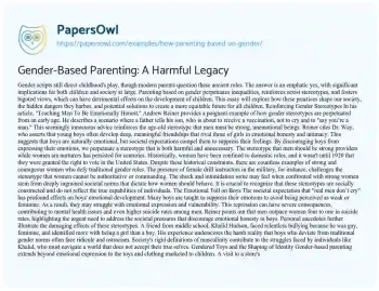 Gender-Based Parenting: A Harmful Legacy. (2021, Feb 25). Retrieved from https://hub.papersowl.com/examples/how-parenting-based-on-gender/