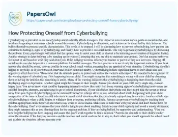 How Protecting Oneself from Cyberbullying. (2020, May 10). Retrieved from https://hub.papersowl.com/examples/how-protecting-oneself-from-cyberbullying/