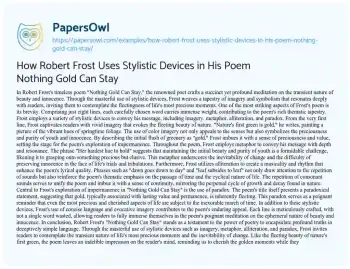 How Robert Frost Uses Stylistic Devices in His Poem Nothing Gold Can Stay. (2024, Apr 14). Retrieved from https://hub.papersowl.com/examples/how-robert-frost-uses-stylistic-devices-in-his-poem-nothing-gold-can-stay/