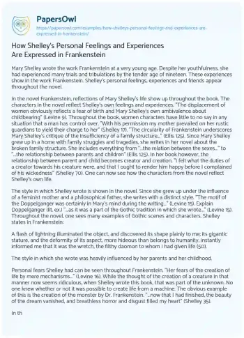 How Shelley's Personal Feelings and Experiences Are Expressed in Frankenstein. (2023, Feb 13). Retrieved from https://hub.papersowl.com/examples/how-shelleys-personal-feelings-and-experiences-are-expressed-in-frankenstein/