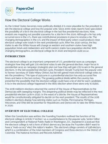 How the Electoral College Works. (2019, Dec 27). Retrieved from https://hub.papersowl.com/examples/how-the-electoral-college-works/