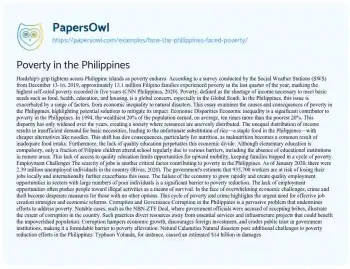 This essay examines the causes and consequences of poverty in the Philippines, highlighting potential solutions to mitigate its impact.