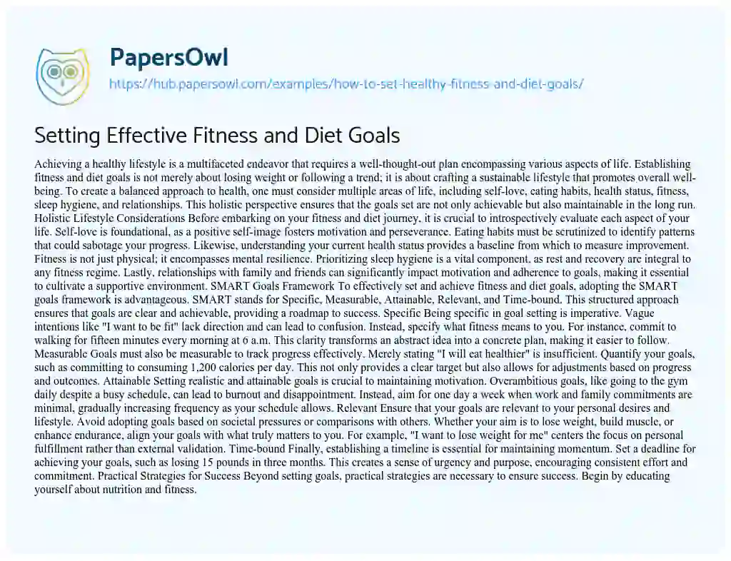 Setting Effective Fitness and Diet Goals. (2019, Jul 31). Retrieved from https://hub.papersowl.com/examples/how-to-set-healthy-fitness-and-diet-goals/