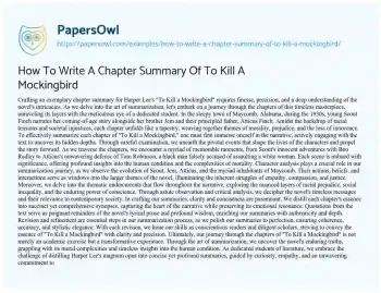 How To Write A Chapter Summary Of To Kill A Mockingbird