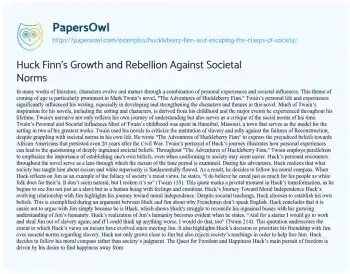 Huck Finn’s Growth and Rebellion Against Societal Norms. (2019, Dec 14). Retrieved from https://hub.papersowl.com/examples/huckleberry-finn-and-escaping-the-clasps-of-society/
