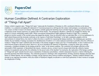 Human Condition Defined: A Contrarian Exploration of "Things Fall Apart". (2023, Dec 22). Retrieved from https://hub.papersowl.com/examples/human-condition-defined-a-contrarian-exploration-of-things-fall-apart/