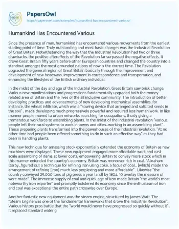 Humankind Has Encountered Various. (2019, Dec 08). Retrieved from https://hub.papersowl.com/examples/humankind-has-encountered-various/