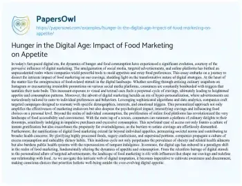 Hunger in the Digital Age: Impact of Food Marketing on Appetite