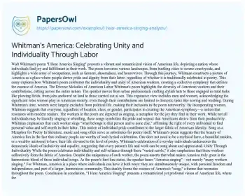 This essay explores how Whitman's poem celebrates the individuality and unity of American workers, creating a collective symphony that defines the essence of America.