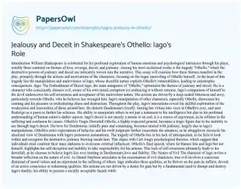 Jealousy and Deceit in Shakespeare’s Othello: Iago’s Role