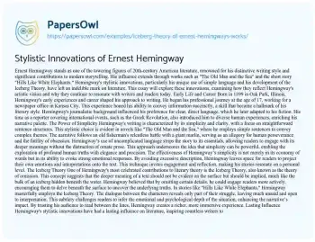 Stylistic Innovations of Ernest Hemingway. (2021, May 29). Retrieved from https://hub.papersowl.com/examples/iceberg-theory-of-ernest-hemingways-works/
